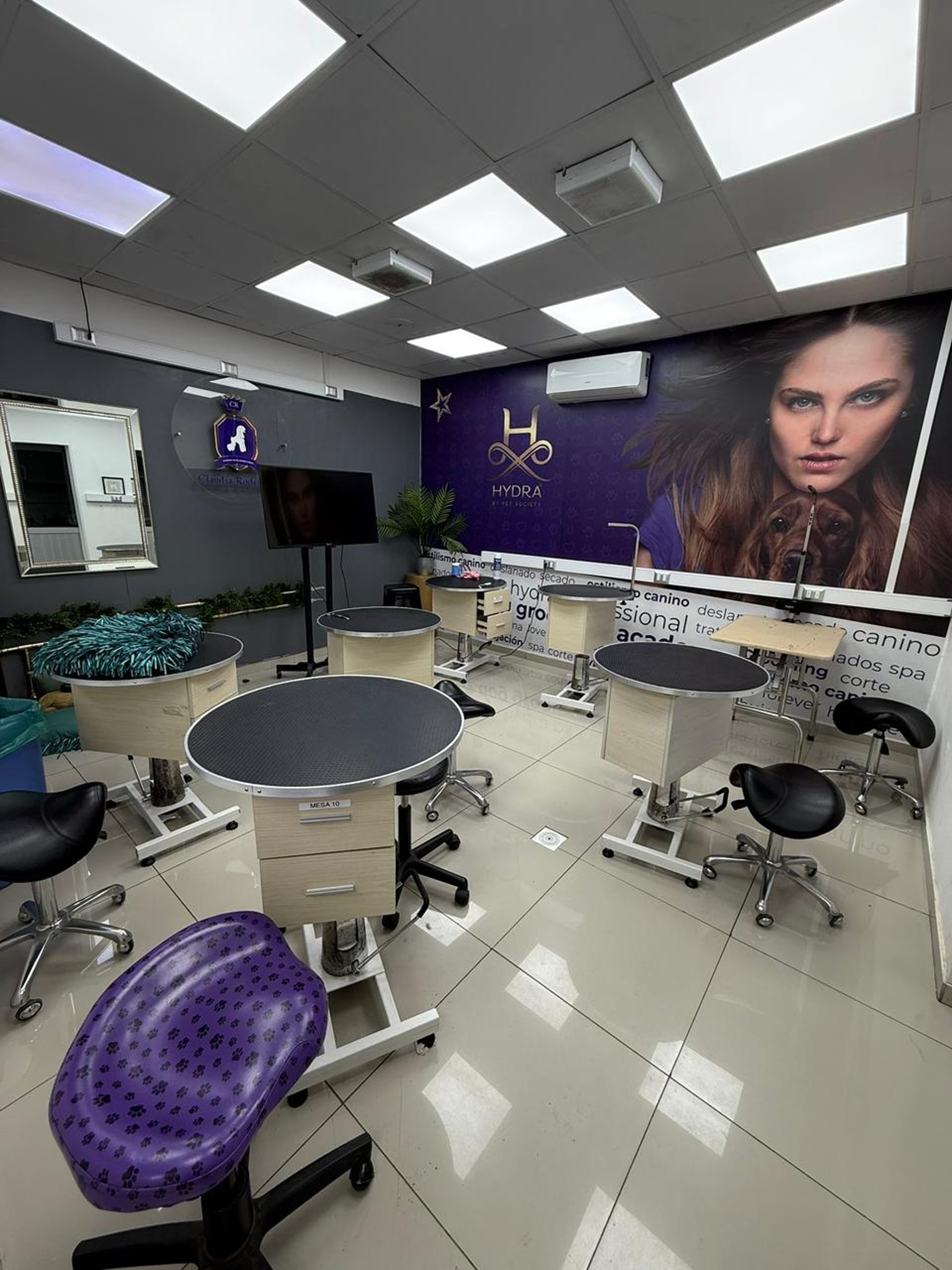 Nuestras clases prácticas se desarrollan en un salón académico profesional, equipado con mesas hidráulicas, herramientas especializadas y una infraestructura diseñada para replicar el funcionamiento de una peluquería canina real, pero enfocada 100% en la formación del alumno.